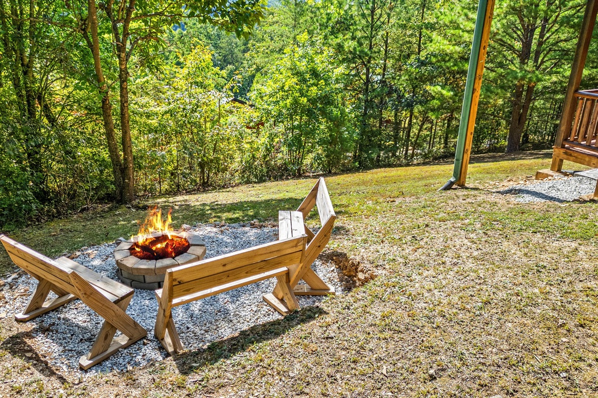• 🔥 Fire Pit with String Lights – Gather for s’mores and laughter under the Tennessee night sky