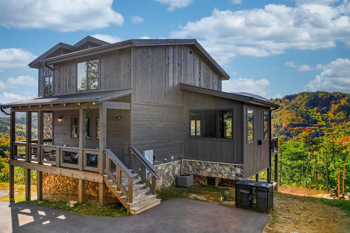 Escape to Thunder Mountain Sanctuary, a luxury 5-bedroom, 5.5-bath cabin in Pigeon Forge, Tennessee, where panoramic mountain views meet high-end comfort. Perfect for families, groups, and reunions, this modern mountain retreat sleeps up to 12 guests and features a private indoor pool, home theater, arcade, hot tub, and dual fire pits—all surrounded by the breathtaking Smoky Mountains.