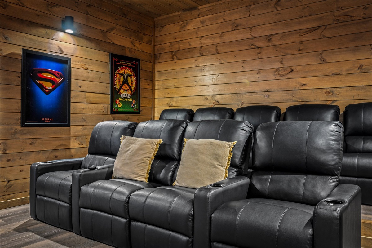 • 🎬 Home Theater Room – Big screen, plush recliners, and surround sound for movie nights.