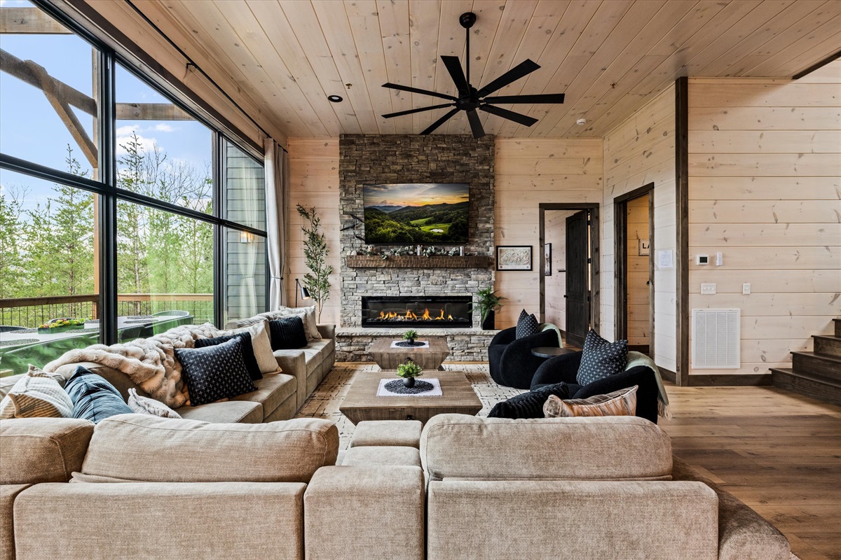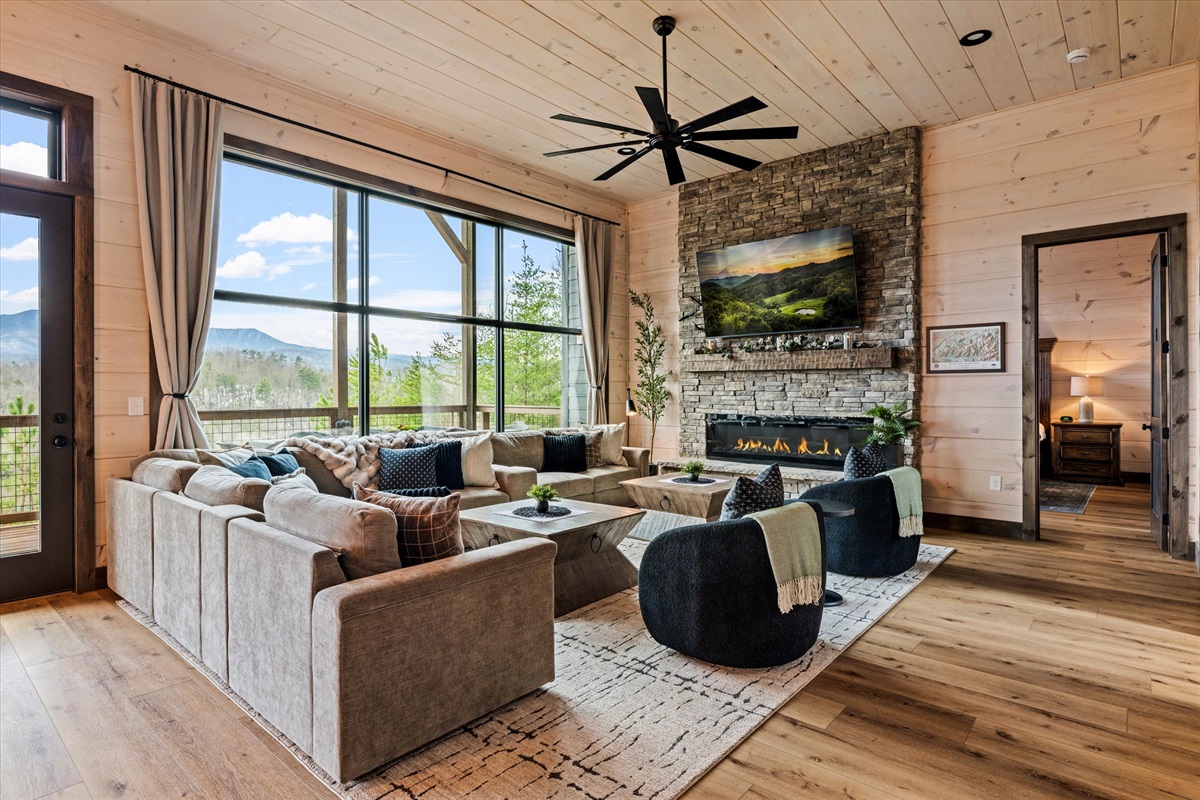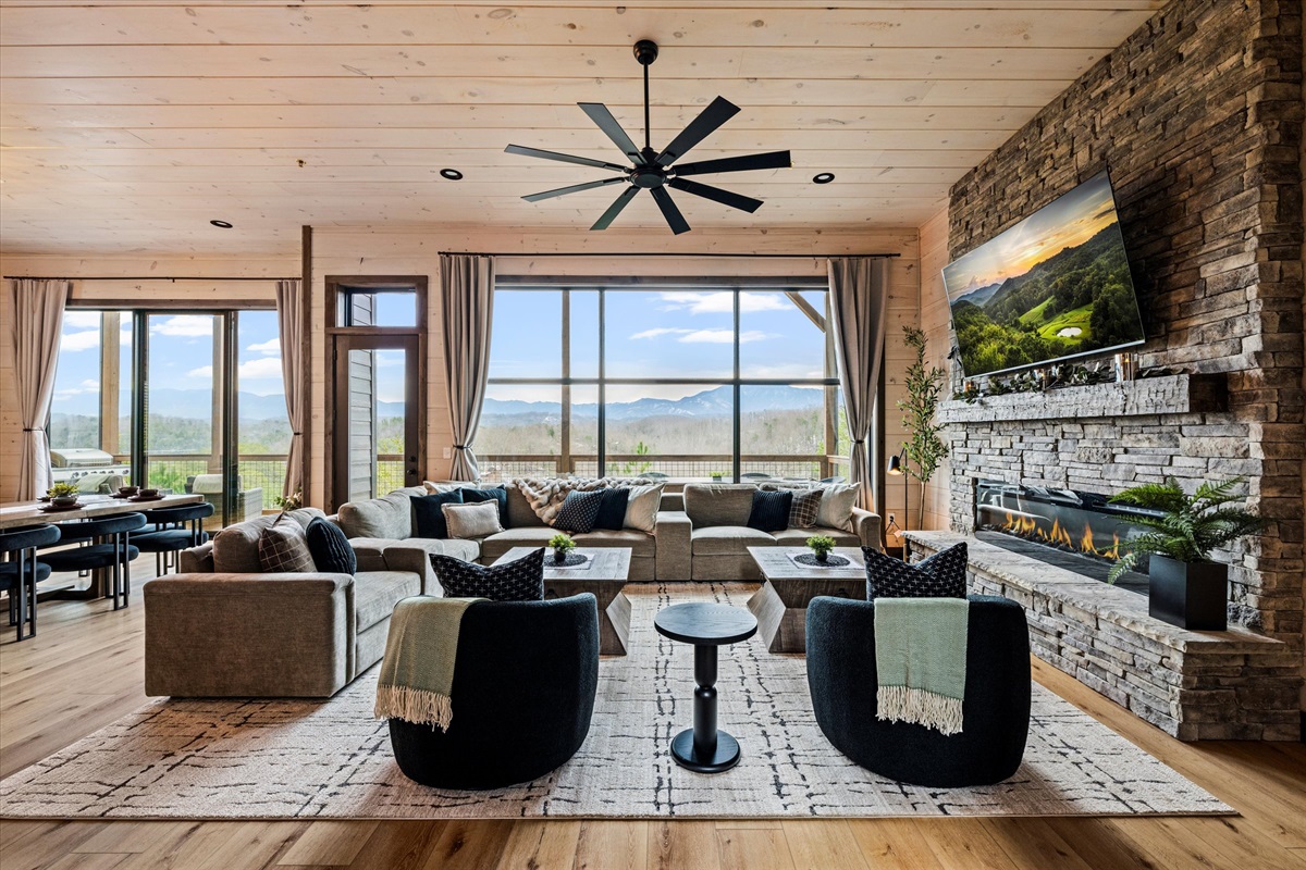 Welcome to this exceptional luxury Smoky Mountain cabin in Sevierville, designed for comfort, privacy, and unforgettable group stays. Located on easy, well-maintained roads and surrounded by breathtaking mountain scenery, this three-level retreat offers panoramic views of Mount LeConte from every deck, along with high-end amenities rarely found together in one home.