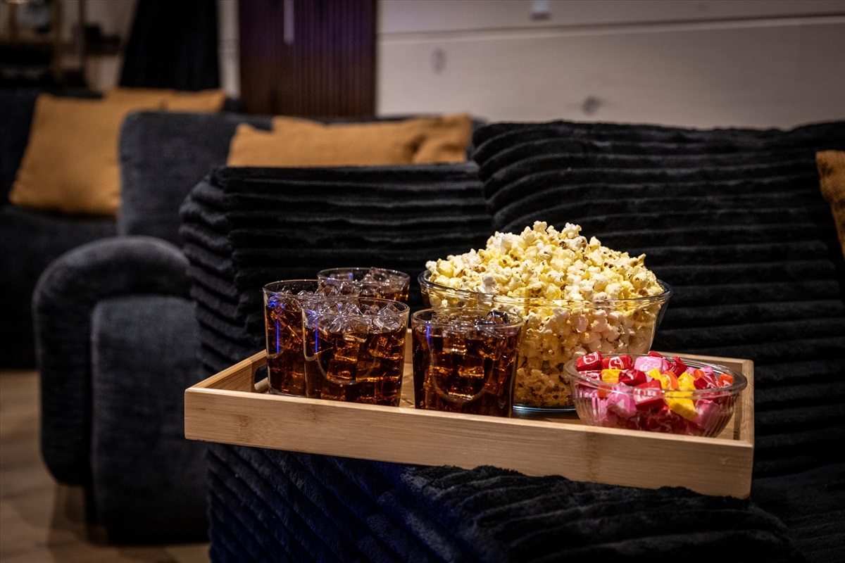 • Private theater room with popcorn machine for movie nights