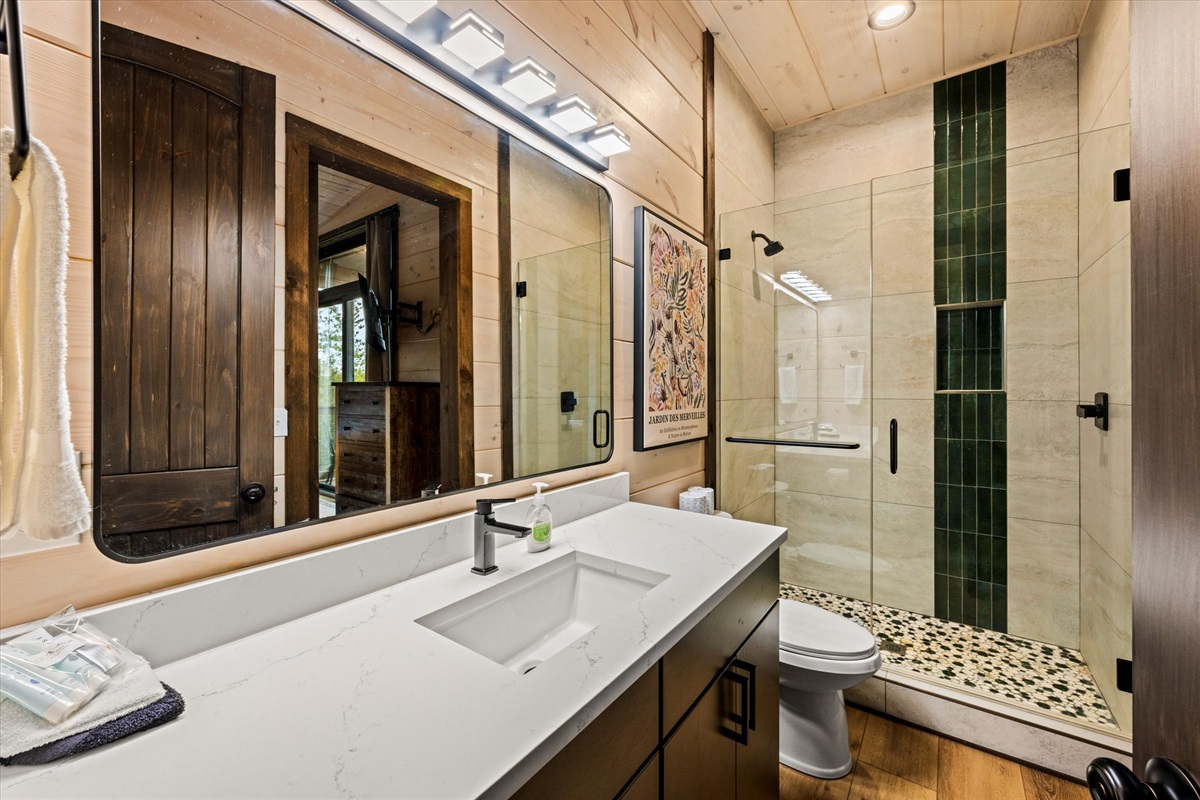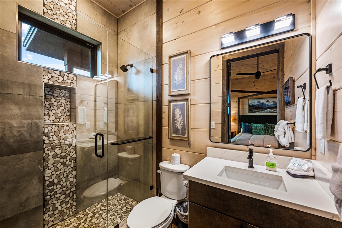 With six king bedrooms — all with private en-suite bathrooms, this home is ideal for large families, multigenerational trips, retreats, and group getaways looking for space without sacrificing luxury. One king suite includes a twin trundle, offering added flexibility for children or additional guests.