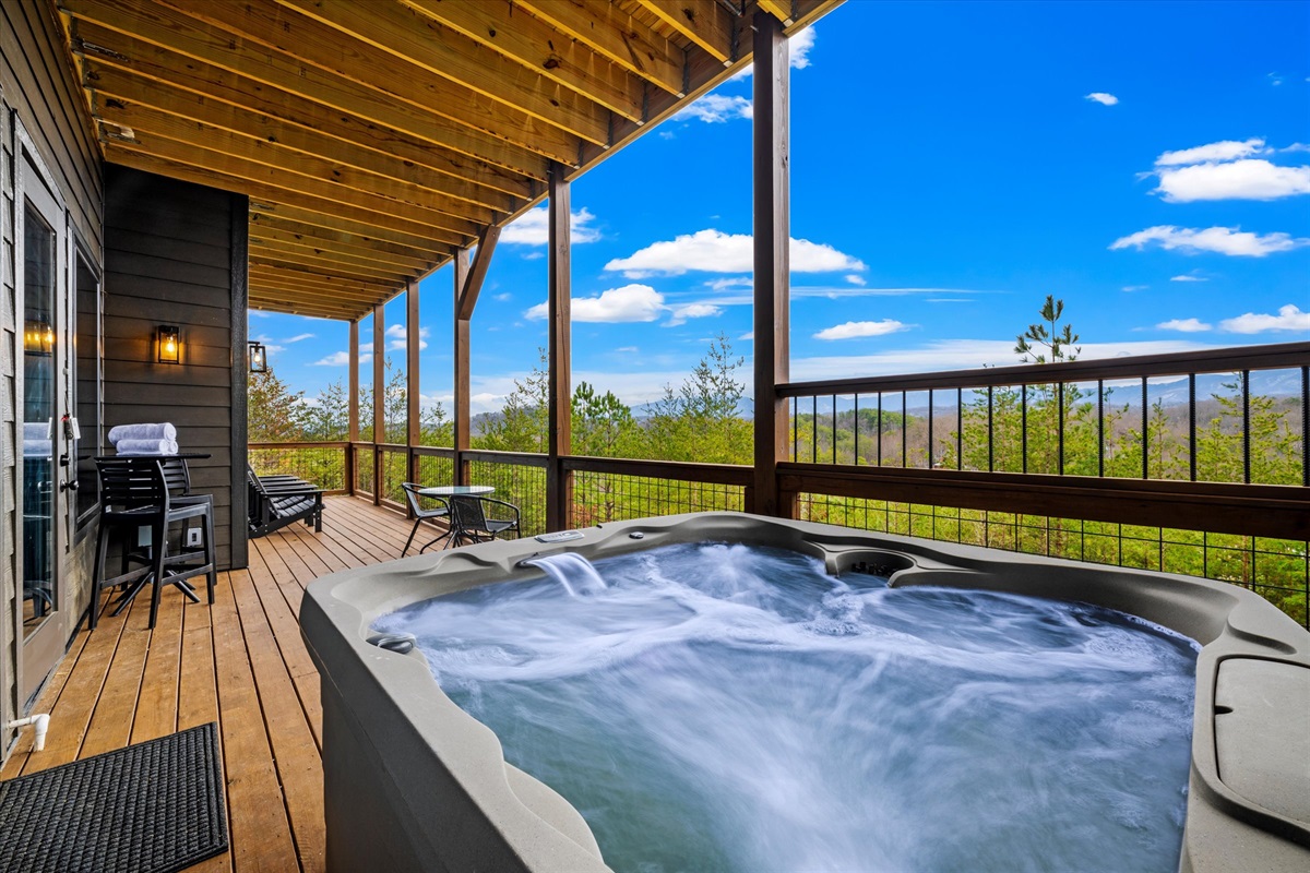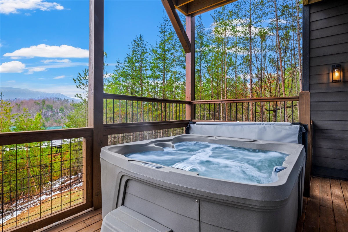 • Private hot tub overlooking the mountains